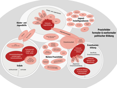 Mit der Topografie der Praxis politischer Bildung gibt die Fachstelle politische Bildung einen Überblick über die Vielfalt und Differenziertheit der politischen Bildungslandschaft, deren Strukturen und Ansätze. Diejenigen Praxisfelder werden dargestellt, in denen politische Bildung mit unterschiedlichen Konzepten verortet ist.