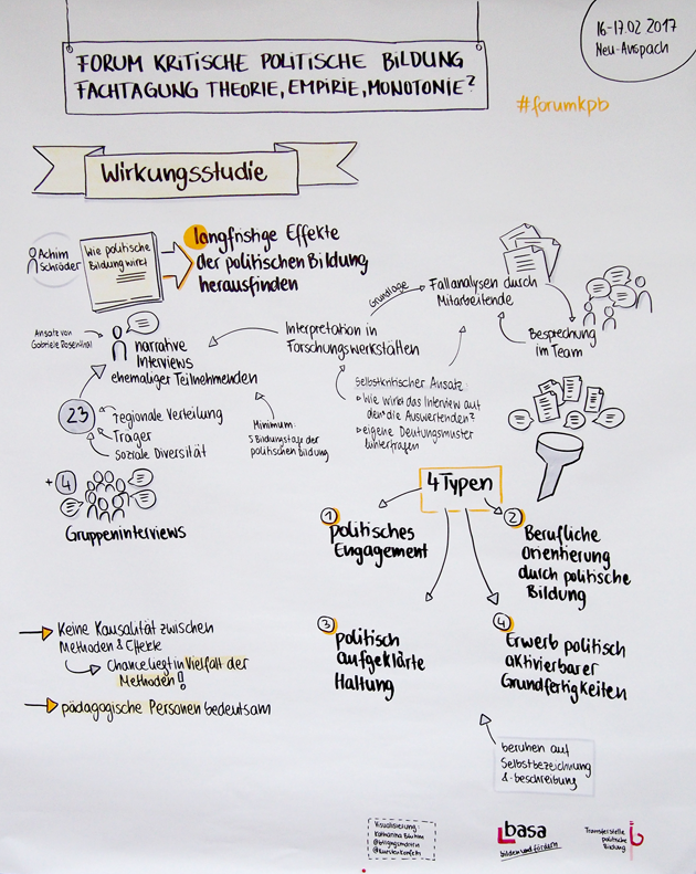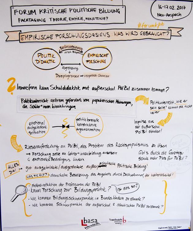 Am 16./17.02.2017 trafen sich Expert_innen aus Wissenschaft und Praxis politischer Bildung in der Bildungsstätte Alte Schule Anspach (basa e. V.) zu einer Fachtagung zum kritischen Verständnis empirischer Forschung und ihrer Auswirkungen für die politische Bildungspraxis. Die Veranstaltung fand in Kooperation von basa e. V., der Transferstelle politische Bildung und dem Forum Kritische Politische Bildung statt.